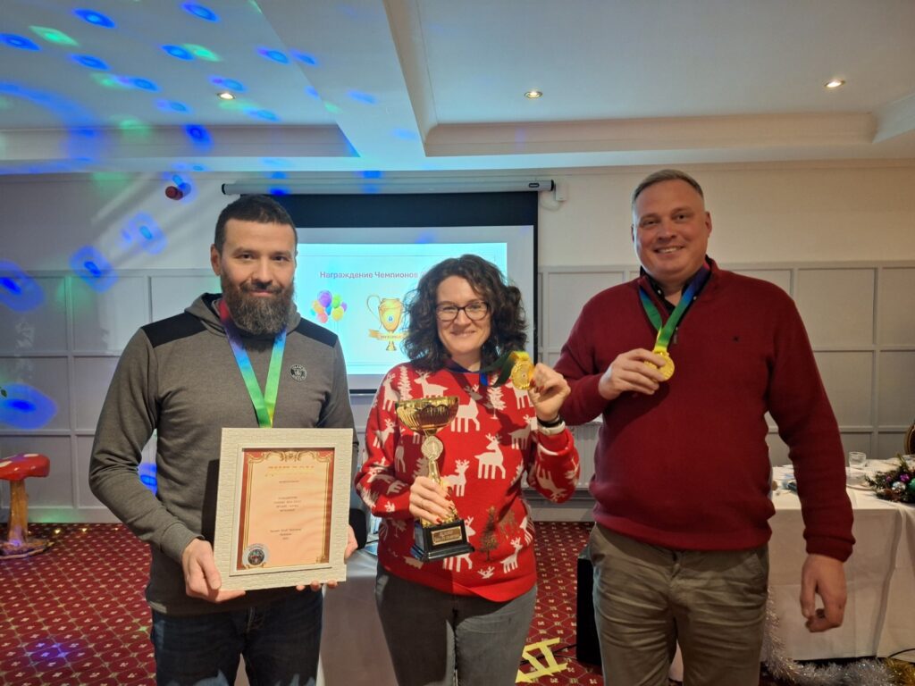 ну вот и отзвенела под звуки новогодних бубенцов наша декабрьская игра, а с ней и первый сезон эрудит-клуба “Мухомор”. 6 команд пришли к нам на бенгальский огонек. В упорнейшей борьбе победила команда “Случайная компания”, приехавшая к нам из Дублина. Вторыми с отставанием в очко стал “Грибной Экспресс”.